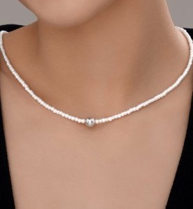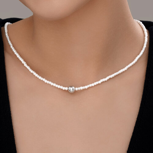 Серебряное Колье Жемчуг синтетический (арт. 94-170-00119-1)